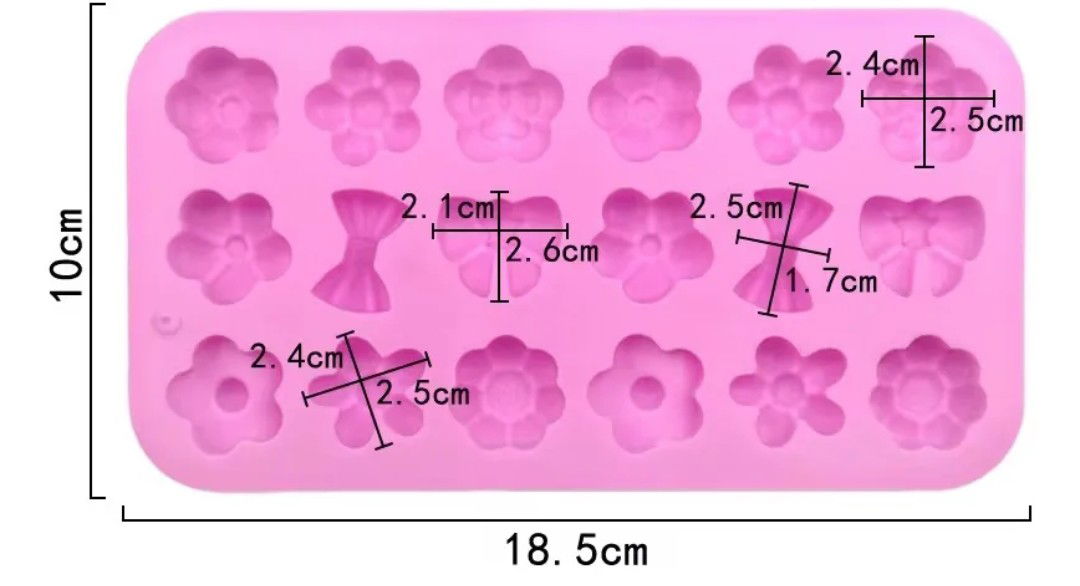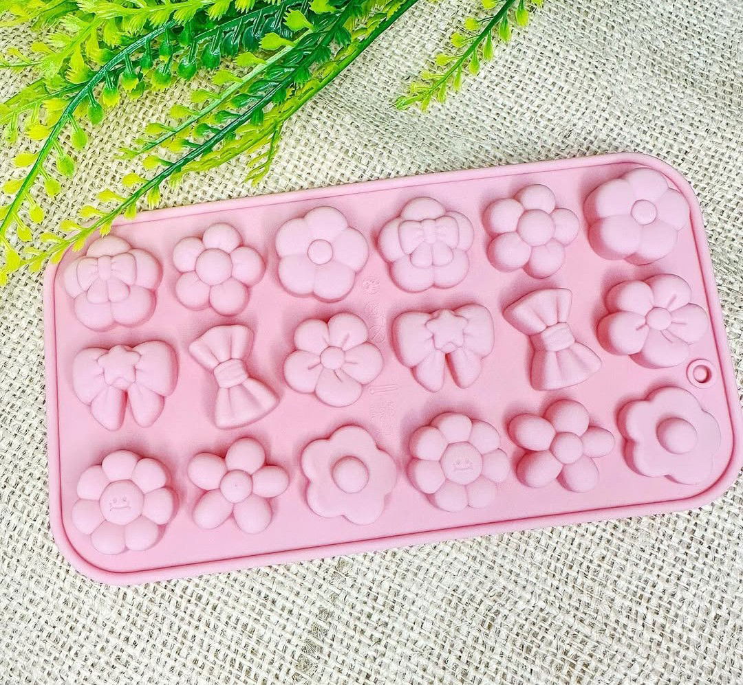 Molde de silicona flexible diseño florcitas y moños  ideal para jabones, velas decorativas, wax melts  o piezas modernas en cemento, yeso o resina. Su forma  es perfecta para lograr un estilo minimalista. Apto para resina acrílica, epoxi o poliéster y cera de soja, parafina u otras. Jabones